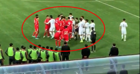 영상 속에서 골키퍼를 제외한 한국과 북한의 필드플레이어 전원이 한 데 엉켜 있다. 심판진은 이들을 말리고 있다. 이 모습을 북한 벤치에 있는 선수들이 터치 라인 근처까지 나와 지켜보고 있다. 북한 선수단에 둘러싸인 손흥민이 중재를 하는 모습도 보였다. 다행히 더 큰 불상사는 없었다. 손흥민과 리용직이 이야기를 나누는 것으로 사태는 마무리됐다.