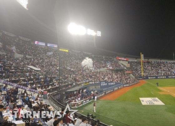 그래도 잠실을 찾은 키움의 원정 팬들의 응원은 뜨거웠다. 이날 잠실구장은 2만 5000석이 매진됐고, 1루와 중앙, 외야까지 거의 두산 팬들이 자리했다.