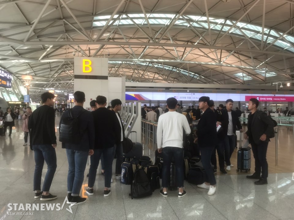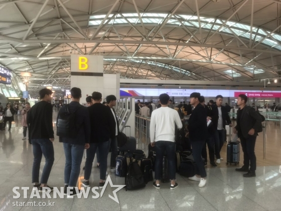 NC 다이노스 선수단이 정장 차림이 아닌 청바지에 운동화를 착용한 간편한 복장으로 출국 길에 오른다.