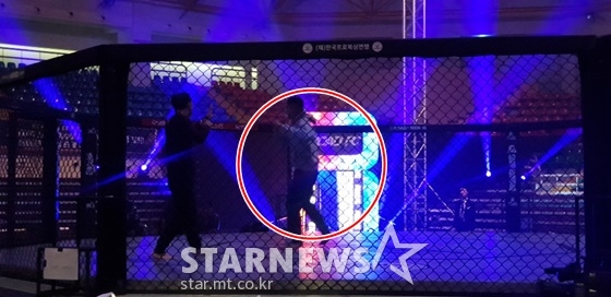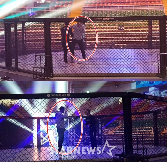 경기에 앞서 권아솔은 케이지에 올라 훈련 파트너와 함께 몸을 풀었다. 움직임이 가벼워 보였다. 날렵하게 움직인 뒤 펀치와 킥, 그라운드 기술을 선보였다. 경기 감각을 찾으려고 노력하는 모습이었다.