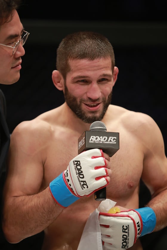 9일 권아솔에게 이긴 뒤 소감을 밝히는 샤밀 자브로프. /사진=로드 FC