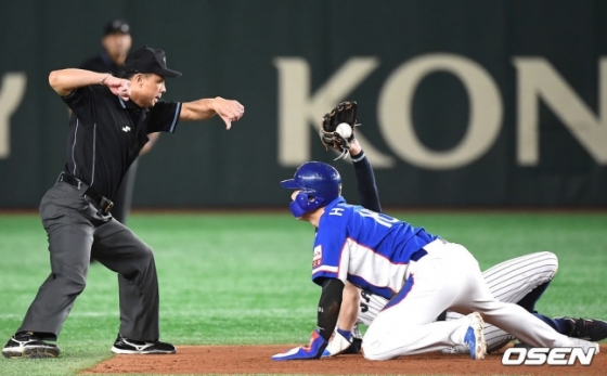 17일 일본과 결승전 3-4로 역전 당한 뒤 맞은 한국의 3회초 공격. 선두타자 김하성이 좌전안타를 치고 나갔다. 후속 김재환의 타구는 깊숙한 외야 플라이. 1루주자 김하성이 태그업했으나 일본 좌익수 곤도 겐스케의 호송구에 2루에서 아웃됐다. KBO리그에서였다면 세이프가 됐을 테지만 일본 수비는 달랐다.