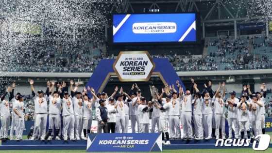 두산 베어스가 11월 24일 낮 12시부터 잠실야구장에서 '2019 통합우승 기념 곰들의 모임' 환담회를 연다.