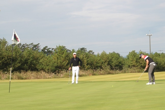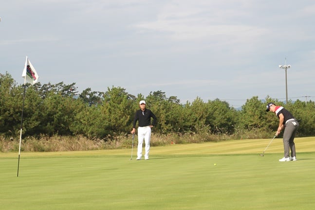 이후 8번홀까지 계속 비긴 두 팀은 9번홀에서도 긴장감 넘치는 승부를 벌였다. 이 때 다시 김 위원의 퍼팅이 춤을 췄다. 롱퍼팅이 부드럽게 들어가면서 버디로 연결된 것이다. 조 감독도 기를 쓰고 달려들어 간신히 버디를 하고 마지막 홀까지 무승부를 기록했다.