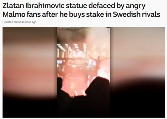 피해 상황은 이미 확인됐다. 말뫼 팬들은 지난해 10월 세워진 이브라히모비치의 동상을 방화했다. 이는 영상으로 공개가 됐다. 또한 동상 근처에는 보스니아어로 ‘집시’와 ‘죽음’이라는 단어가 스프레이로 낙서 되어 있었다. 이브라히모비치의 아버지는 보스니아인이다. 인종차별 행위로 볼 소지가 있다.
