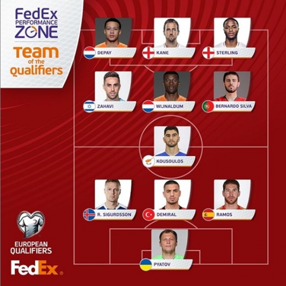 유럽축구연맹(UEFA)은 30일(한국시간) 공식 홈페이지를 통해 유로2020 예선의 베스트11을 선정, 발표했다. 예선 내내 가장 많은 득점을 한 해리 케인(잉글랜드)과 도움 1위 멤피스 데파이(네덜란드)를 중심으로 3-1-3-3 전형으로 베스트11이 장식됐다.