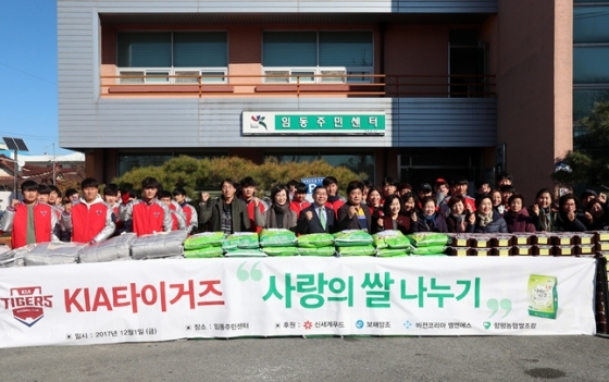 KIA 선수단과 구단 임직원은 오는 7일 오전 10시 광주 북구 임동 주민센터에서 '사랑의 쌀' 3160kg 전달식을 개최한다. 사랑의 쌀은 임동 지역 기초 수급자 가정에 전달될 예정이다.