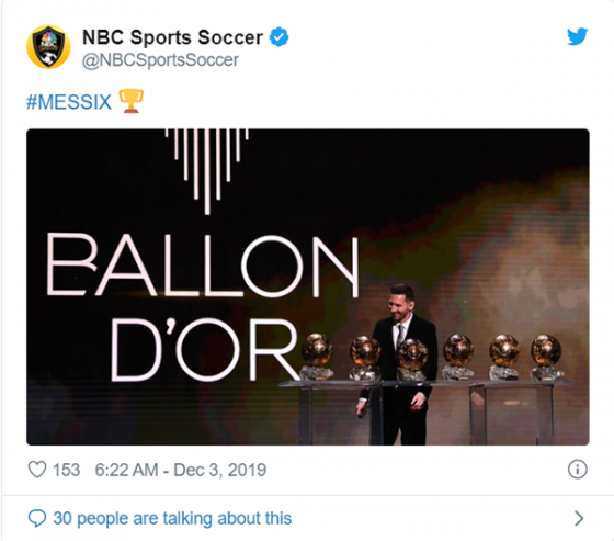 조셉 마리아 바르토메우 바르셀로나 회장은 “발롱도르가 다시 한번 최고의 선수에게 향했다. 축구와 바르셀로나는 또 다른 업적을 세운 메시를 축하한다”라며 자부심을 드러냈다.