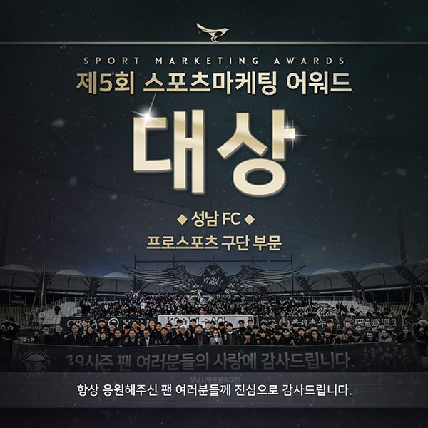 ‘팬 사랑 받은’ 성남, 스포츠마케팅어워드 대상 선정