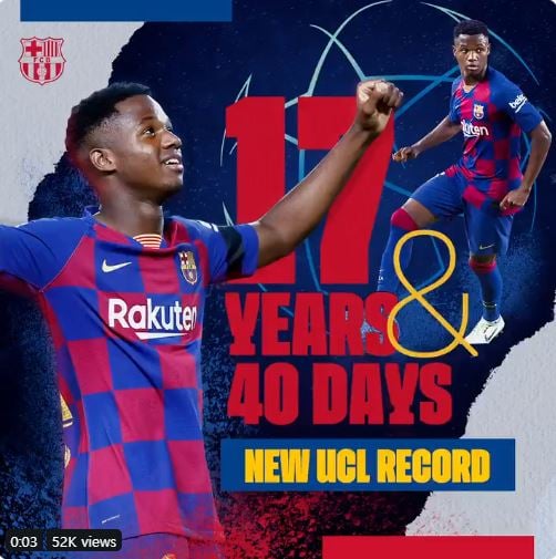 파티의 골은 UCL 역사에 기록됐다. 17세 40일의 파티가 UCL 최연소 득점 기록을 갈아치운 것. 기존 기록은 피터 오포리-쿠예(올림피아코스)의 17세 195일이었다. 1997년 기록이니, 파티가 22년 만에 새로운 기록을 만들어냈다.