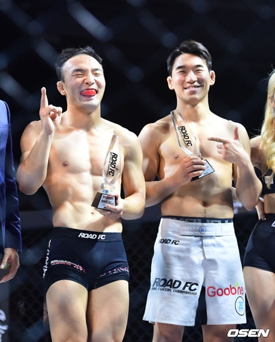 이윤준(31)과 김수철(28)은 14일 서울 홍은동 그랜드힐튼호텔에서 열린 굽네몰 ROAD FC 057 그래플링 매치에서 일본 팀 시미즈 슌이치(34), 타쿠미 나카야마(46)를 상대로 최종 스코어 1승 2무로 승리를 거뒀다.