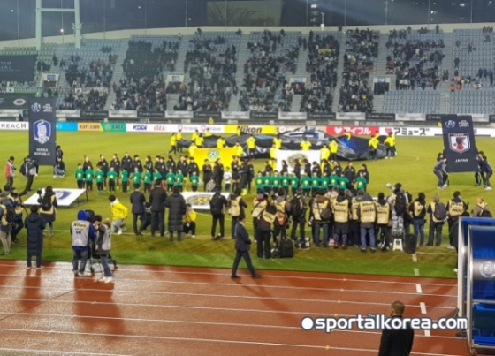 [스포탈코리아=부산 구덕] 곽힘찬 기자= 역시 ‘영원한 라이벌’ 일본전은 달랐다. 생각보다 많은 관중이 경기장을 찾아 열띤 응원을 펼쳤다.