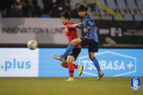 경기 시작과 동시에 일본의 공격이 시작됐다. 전반 6분 일본이 측면에서 올린 크로스를 홍혜지가 가까스로 걷어냈다. 19분 한국에 위기가 찾아왔다. 한국 수비진을 파고든 다나카가 결정적인 기회를 맞았지만 김혜리의 커버가 빨랐다.