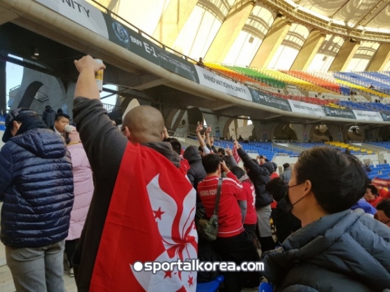 이날 경기장에서도 그 여파가 이어졌다. 다수의 홍콩 팬들이 정치적 의미가 담긴 물품을 반입하다 보안요원들에게 제지됐다. 한 팬은 한국어로 ‘광복홍콩’, ‘시대혁명’, ‘5대 요구 수용하라’가 적힌 빨간 티셔츠를 반입하다 적발됐다. 대한축구협회가 “경기장 내 정치적 문구 및 플래카드 반입은 불가하다”라고 알렸지만 소용이 없었다.