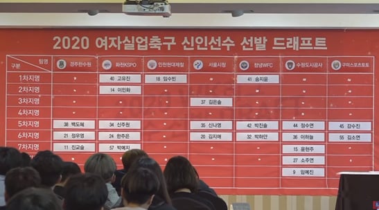[스포탈코리아] 이보경 기자= 한국여자축구연맹은 19일 오전 10시 서울 코리아나호텔에서 ‘2020 여자실업축구(WK리그) 신인선수 선발 드래프트’를 개최했다. 총 57명의 선수가 드래프트에 지원했으며 별도로 선수를 선발하는 보은 상무를 제외한 7개 구단이 참여했다.