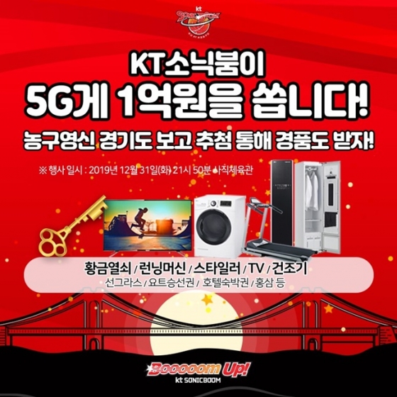 부산 KT 소닉붐이 2019년의 대미를 장식하는 농구영신(농구+송구영신 합성어) 경기에서 약 1억원 상당의 경품을 증정한다고 25일 밝혔다.