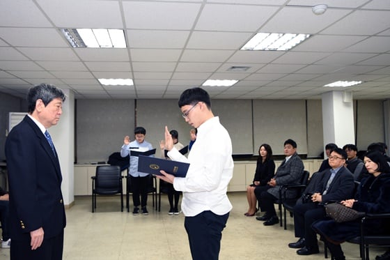 한국기원이 2019년 마지막 입단자 4명의 면장 수여식이 2일 서울 성동구 한국기원에서 열렸다고 2일 밝혔다.
