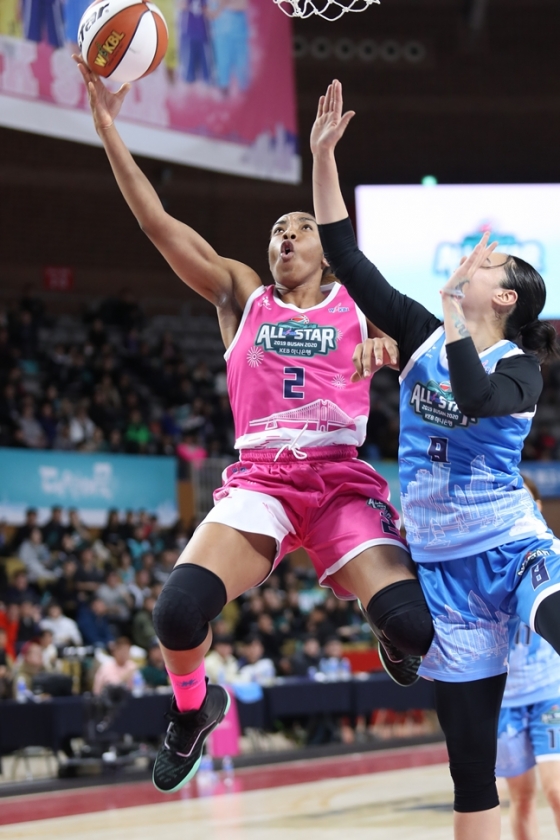 핑크스타는 12일 부산 스포원파크 BNK센터에서 열린 하나원큐 2019~2020 KEB하나은행 WKBL 올스타전서 블루스타에 108-101로 이겼다.