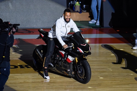 마지막으로 나온 선수가 전태풍이다. 2층 출입구가 아니라, 1층 코트 출입구로 나왔고, 무려 모터사이클을 타고 등장했다. 천천히 코트를 돌았고, 선수들과 관중들의 반응도 뜨거웠다.