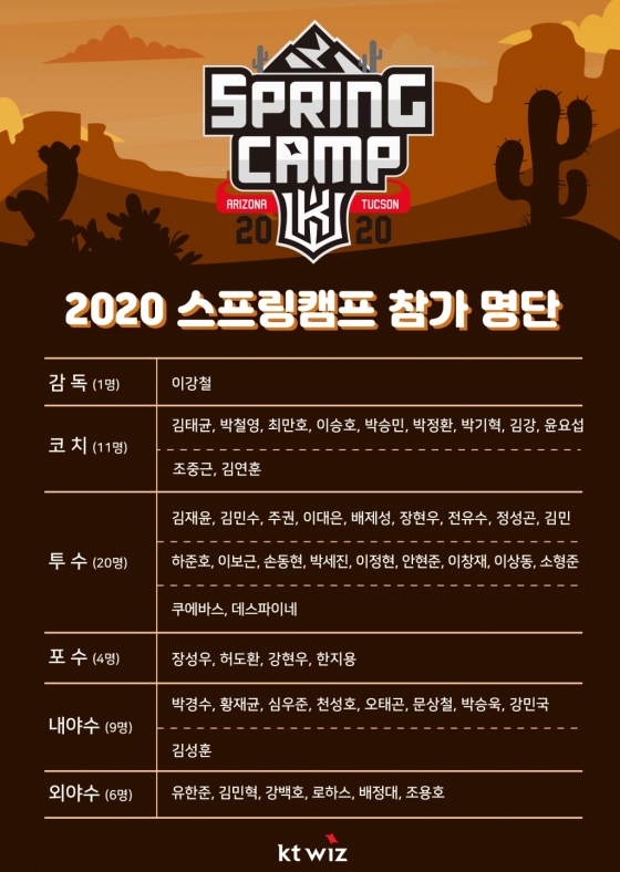 KT 위즈가 오는 29일 미국 애리조나로 스프링캠프를 떠난다.