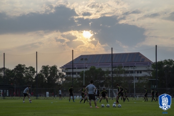 지난 25일(한국시간) 태국 탐마삿 대학교에서 훈련을 하고 있는 한국 U-23 대표팀. /사진=대한축구협회 제공