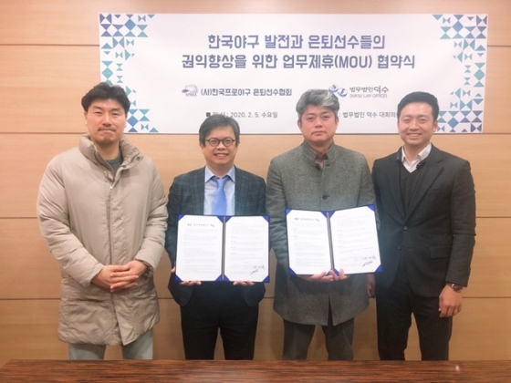 사단법인 한국프로야구 은퇴선수협회(회장 안경현)는 법무법인 덕수(대표변호사 김형태, 담당변호사 윤영환)와 5일 서울 역삼동에 위치한 법무법인 덕수 사무실에서 프로야구 은퇴선수들의 권익향상과 한국야구의 발전을 위해 업무협약(MOU)을 체결했다고 6일 밝혔다.