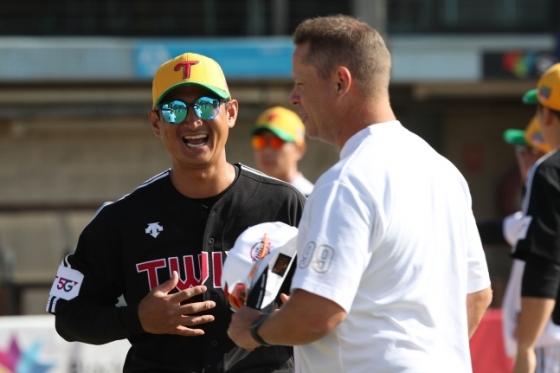 옥스프링은 류중일(57) 감독과 인사를 나눈 뒤 같이 뛰었던 옛 동료 박용택(41) 등과 해후했다. 또 외국인 선수 윌슨(31), 켈리(31), 라모스(26)와도 많은 대화를 나누며 조언도 해줬다.