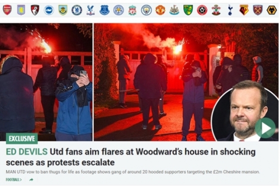 문제가 된 기사는 지난달 29일자 보도였다. 영국 '더선'은 "체셔 지역의 있는 우드워드 부사장의 자택이 일부 과격한 맨유 팬들로부터 공격을 받았다. 얼굴을 덮은 발라클라바 모습을 한 소수 팬들은 우드워드 부사장 자택으로 조명탄을 던지는 행동을 비디오로 찍었다"고 알렸다.