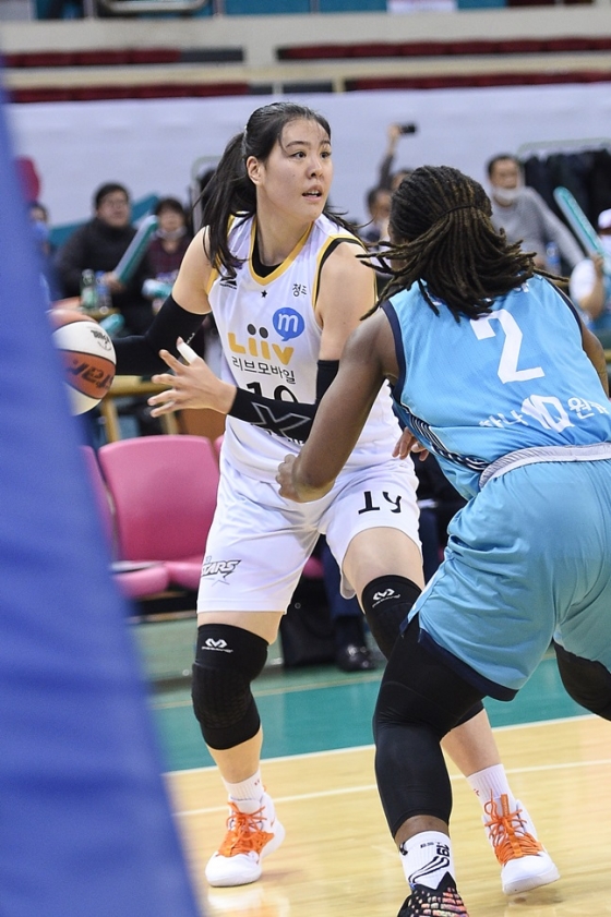 박지수는 16일 부천체육관에서 열린 하나원큐 2019~2020 여자프로농구 정규리그 5라운드 하나은행전에서 11점 15리바운드 5어시스트로 활약했다. 하지만 팀이 66-74로 패하며 빛이 바랬다.