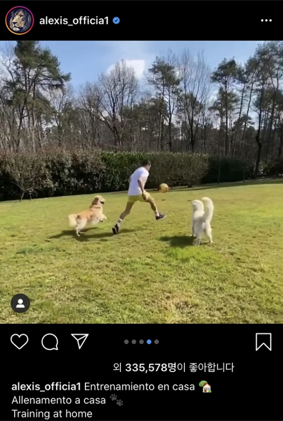 ‘더 선’은 14일(한국시간) “산체스가 코로나19 격리 중에도 두 마리의 개와 훈련을 했다”고 전했다.