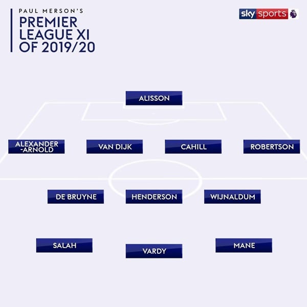 가장 주목할 점은 리버풀 소속만 8명이다. 리버풀은 올 시즌 1패만 할 정도로 압도적인 성적과 함께 선두를 놓치지 않았다. 현재 리그는 중단된 상태이지만, 2승을 더하면 자력 우승을 이룬다. 30년 만의 리그 우승이 목전 앞에 있다.