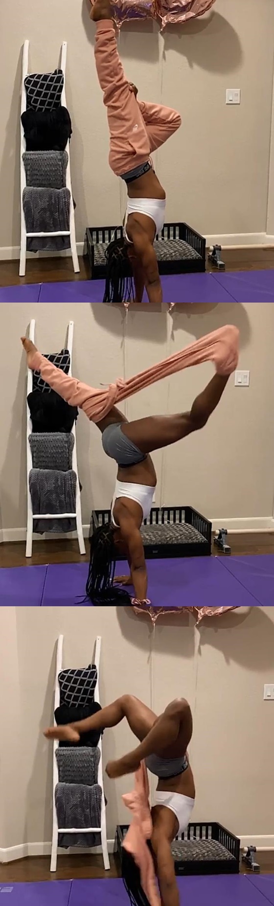 바일스는 12일(한국시간) 자신의 인스타그램에 한 영상을 공개했다. 누구도 쉽게 따라 할 수 없는 '대박 묘기'를 선보였다. 바일스는 물구나무를 선 뒤 손을 대지 않고 자신의 바지를 벗는 놀라운 동작을 해냈다. 그의 물구나무 서기는 무려 1분간 이어졌다. 비틀비틀 대면서도 끝까지 중심을 잡았고, 두 다리만 이용해 바지를 벗는데 성공했다.