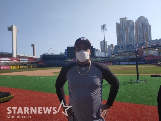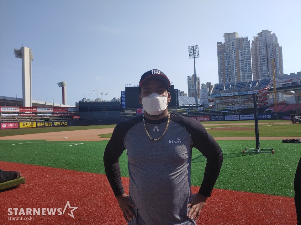 데스파이네는 26일 수원 KT위즈파크서 진행된 훈련을 마치고 "어제 보여준 것이 100%가 아니다. 시즌을 준비하는 과정"이라며 연습경기를 돌아봤다.