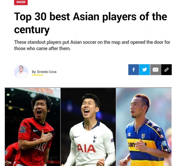 ‘볼라VIP’ 미국판은 15일 금세기 아시아 최고 선수 30명을 선정, 공개했다. 충격적인 결과가 나왔다. 현재 잉글리시 프리미어리그(EPL)을 뜨겁게 달구고 있는 한국의 자존심 손흥민이 1위를 놓쳤다.