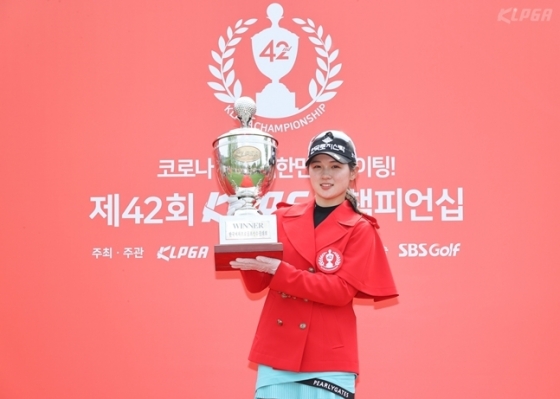 우승 트로피를 들고 포즈를 취하는 박현경./사진=KLPGA