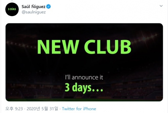 사울은 5월 31일(한국시간) 자신의 SNS에 "3일 안으로 내가 새롭게 뛸 구단을 직접 발표하겠다"는 글을 남겼다.
