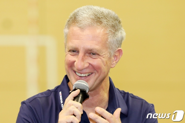 그는 "한국에 오게 돼 영광이다. 좋은 환경에서 훈련할 수 있도록 해준 대한항공에 감사하다"고 인사를 전한 뒤 "한국에 오게 된 것이 꿈만 같다. 대한항공은 국제적으로도 좋은 선수들을 보유하고 있다. 지금 좋은 수프를 갖고 있다. 소스만 더 추가하면 훨씬 더 좋아질 것이다"고 말했다.