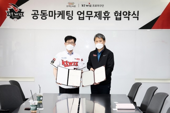 KT 위즈가 전통 문화 테마 파크인 한국민속촌과 팬서비스 제휴 협약을 체결했다고 밝혔다. 11일 오전 수원 KT 위즈 파크 대회의실에서 진행된 협약식에는 KT 송해영 경영기획실장과 한국민속촌 김영천 전무 등 양 사 관계자들이 참석했다.