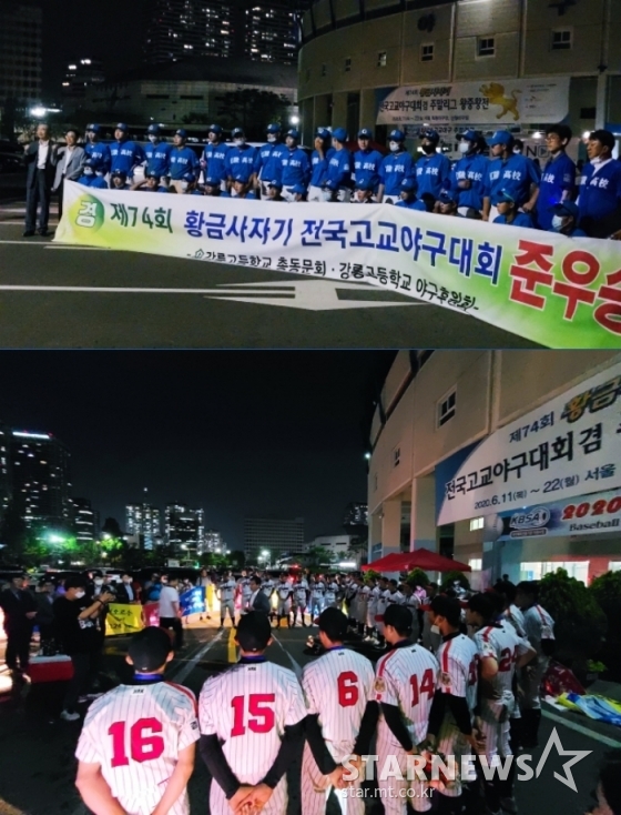 김해고 선수들이 그라운드에 남아 박무승 감독을 헹가래 치며 기뻐하는 순간, 강릉고 선수들은 조용히 라커룸서 짐을 쌌다. 이윽고 목동구장 1층 주출입구 쪽에서 김진욱이 선수 대표로 인터뷰에 임한 뒤 '백전노장' 최재호 감독이 취재진 앞에 섰다.