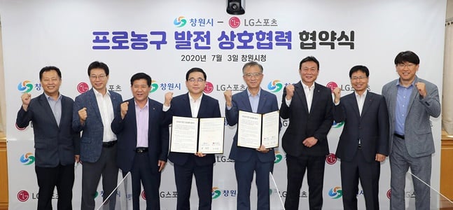 창원 LG 세이커스가 3일 창원시와 프로농구 발전 상호 협력 업무 협약식을 진행했다.