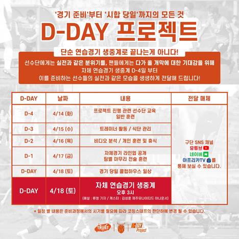 자칫 연습경기 생중계만으로 식사해질 수 있는 시점에서 'D_DAY 프로젝트'를 가동하며 팬과 선수 모두에게 만족감을 줬다. 'D_DAY 프로젝트'는 전술 연습, 비디오 분석, 식단 및 컨디션 관리, 마무리 훈련 및 마지막 날 연습경기까지 이어지는 경기 준비 전과정을 다큐화해 팬들에게 공개했다.