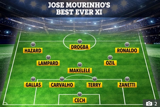 영국 ‘더선’은 14일(현지시간) 기사에서 모리뉴의 ‘올타임 베스트11’을 소개했다.