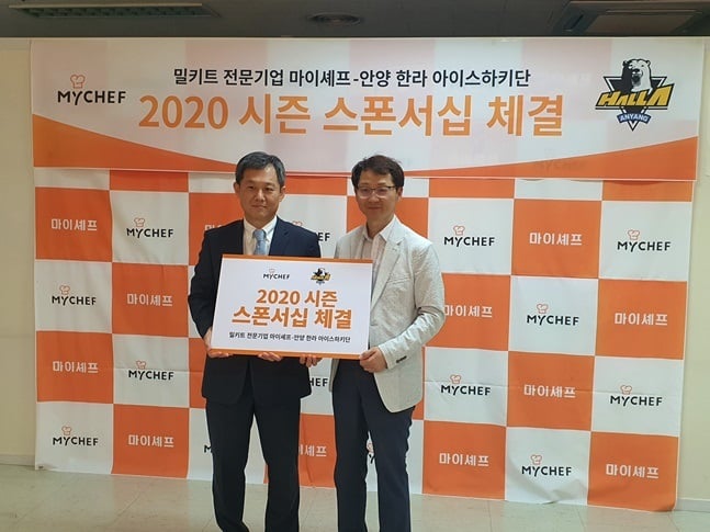 21일 마이셰프와 안양 한라는 각각 임종억 대표와 양승준 단장 등 양사 관계자가 참석한 가운데, 서울시 송파구에 위치한 마이셰프 본사에서 '안양한라 2020~2021시즌 스폰서십' 협약을 체결했다.