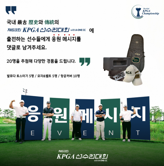 KPGA는 내달 6일부터 경남 양산시에 위치한 에이원컨트리클럽 남, 서 코스에서 진행되는 국내 최고 역사와 전통의 '제63회 KPGA 선수권대회 with A-ONE CC' 대회를 앞두고 골프 팬들을 위한 '응원 메시지 이벤트'를 펼친다.