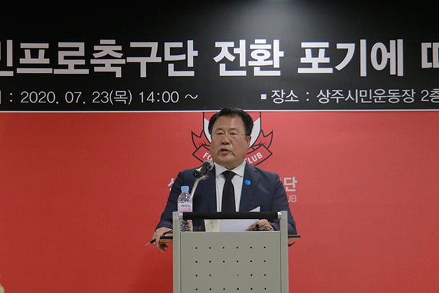 한편, 이날 사)상주시민프로축구단 이사 5명은 일괄 사임서를 제출했다고 밝혔다. 사임 이사들은 △신봉철 대표이사, △김태영 상주시축구협회 회장 △송재엽 상주시산림조합장, △문용훈 전)한국농어촌공사 상주지사 차장, △강민구 상주시축구협회 부회장 등 5명이다.