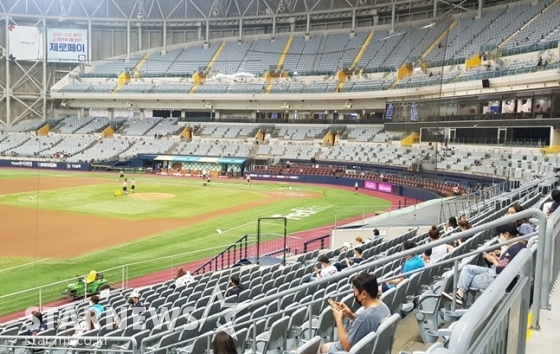 키움과 롯데는 26일 서울 고척스카이돔에서 시즌 9차전을 치른다. 이번 시즌 처음으로 관중이 입장한 채 치르는 경기다. 고척돔 수용인원(16731석)의 10%인 1674명이 입장했다.