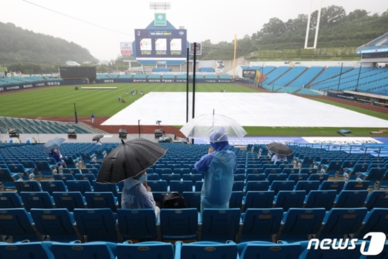 28일 대구에서 열릴 예정이던 삼성 라이온즈와 한화 이글스전이 많은 비로 우천 취소됐다. 첫 관중 허용 경기에 설레는 마음을 안고 구장에 들어섰던 야구팬들도 발걸음을 돌렸다.