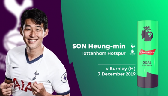 손흥민의 골은 지난해 12월 7일 번리와의 16라운드 홈경기에서 터진 원더골이다. 당시 손흥민은 70m가 넘는 거리를 폭발적인 스피드로 단독 질주한 끝에 환상골을 터트렸다.