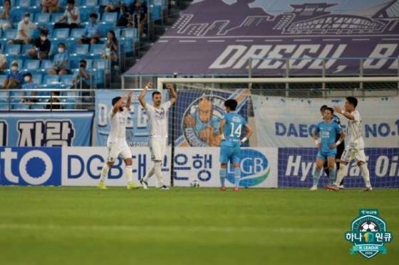 후반 30분 대구는 단독 드리블을 치며 돌파한 세징야가 연결한 패스를 데얀이 슈팅까지 이어갔지만 높게 뜨고 말았다. 32분 정승원의 날카로운 중거리 슈팅을 이태희가 가까스로 선방해냈다. 36분엔 세징야가 날카롭게 감아 찬 슈팅을 이태희가 또 선방해냈다.