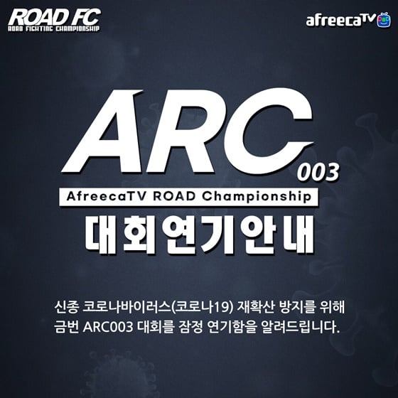 김대환 로드FC 대표는 "ARC 003 대회 개최지인 서울은 물론이고, 전국에서 코로나19 확진자가 대거 나오고 있다. 아프리카TV와 상의해 대회를 연기하기로 결정했다. 코로나19의 상황을 지켜본 뒤 ARC 003 일정을 다시 조율해 발표할 예정"이라고 말했다.